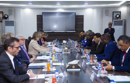 وقدمت المسؤولة الأوروبية الوفد المرافق لها، الذي يضم ممثلين ومديري التعاون الدولي والشراكات الدولية، إضافة إلى مسؤولين من بروكسل، وسفراء دول الاتحاد الأوروبي المعتمدين في موريتانيا، بمن فيهم سفير الاتحاد الأوروبي.