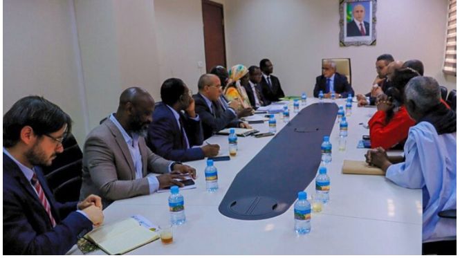عقد معالي وزير الشؤون الاقتصادية والتنمية، السيد عبد الله سليمان الشيخ سيديا، اليوم بمكتبه في نواكشوط، مباحثات مع نائب رئيس البنك الإفريقي للتنمية، السيد مارتان فريجين، والمديرة الإقليمية لغرب إفريقيا بـبرنامج الأغذية العالمي، السيدة كينداي سامبا، خُصصت لبحث سبل تعزيز الشراكة والتعاون بين موريتانيا والمؤسستين.