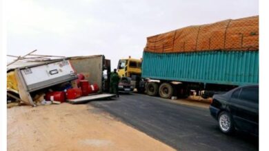 سقوط شاحنة قرب بوتلميت يتسبب فى تعطل الحركة على طريق الأمل